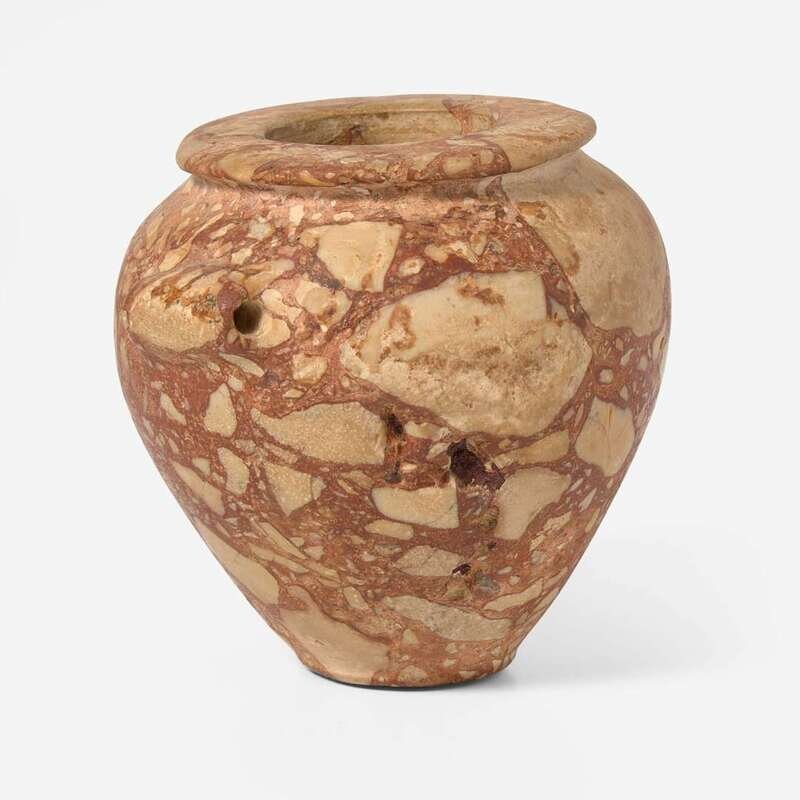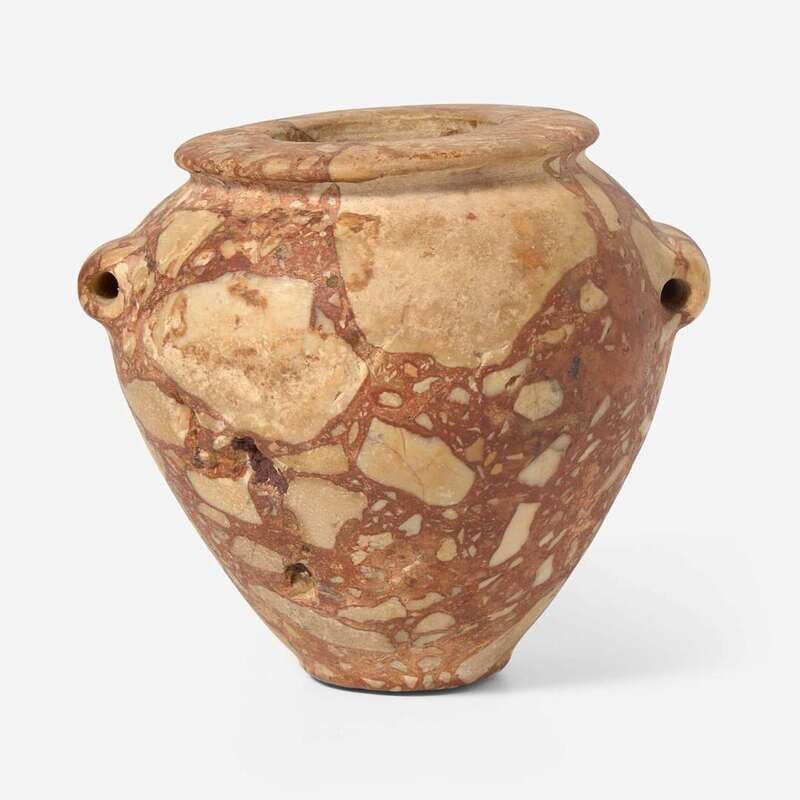 An Egyptian red breccia jar Predynastic Period (Naqada II), circa 3500-2900 B.C.