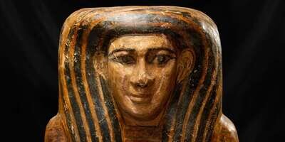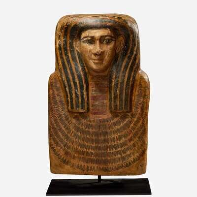 An Ancient Egyptian wooden sarcophagus front Late Period, circa 664-332 B.C.