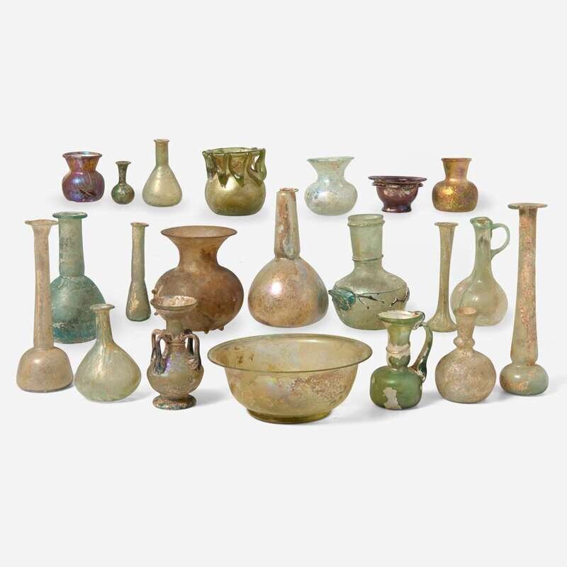 A collection of twenty-one Ancient Roman glass vessels 1st-4th century A.D.