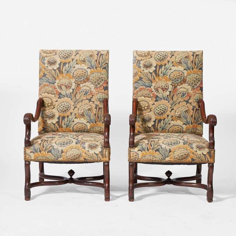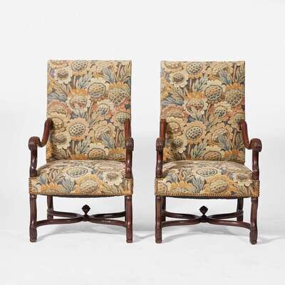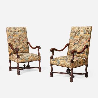 A pair of Baroque Revival carved walnut armchairs late 19th / early 20th century