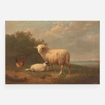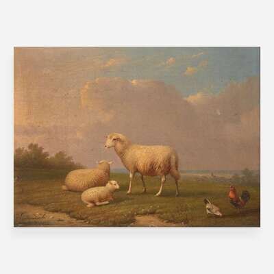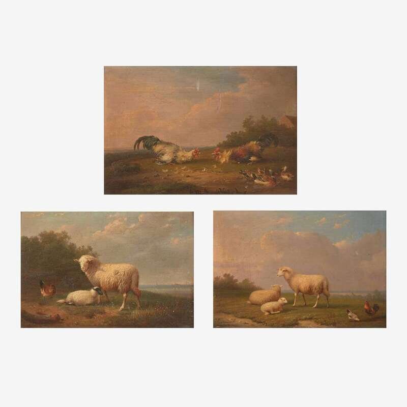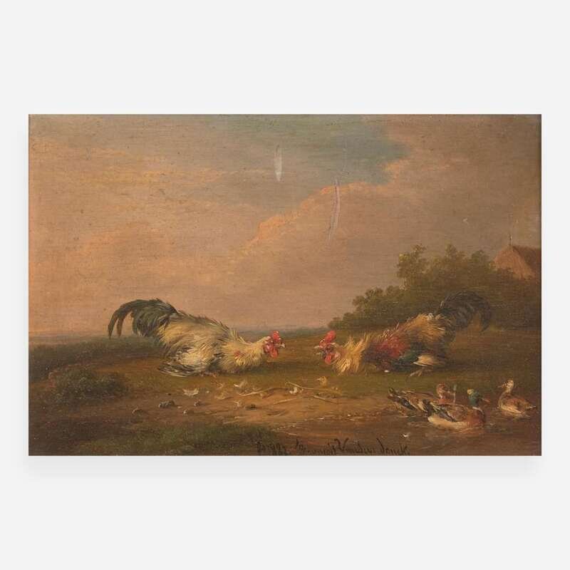 Franz van Severdonck (Belgian, 1809–1889) Cockfight and Family of Sheep; together with a Companion (3)