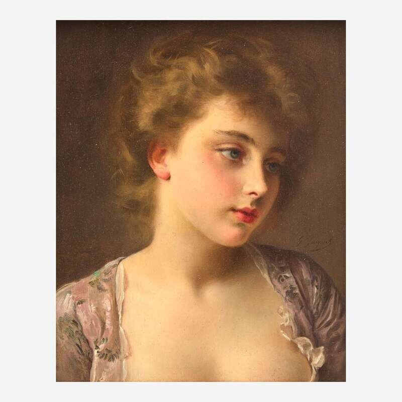Gustave Jean Jacquet (French, 1846-1909) Portrait Bust of a Young Woman
