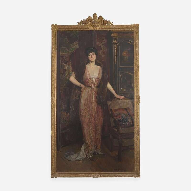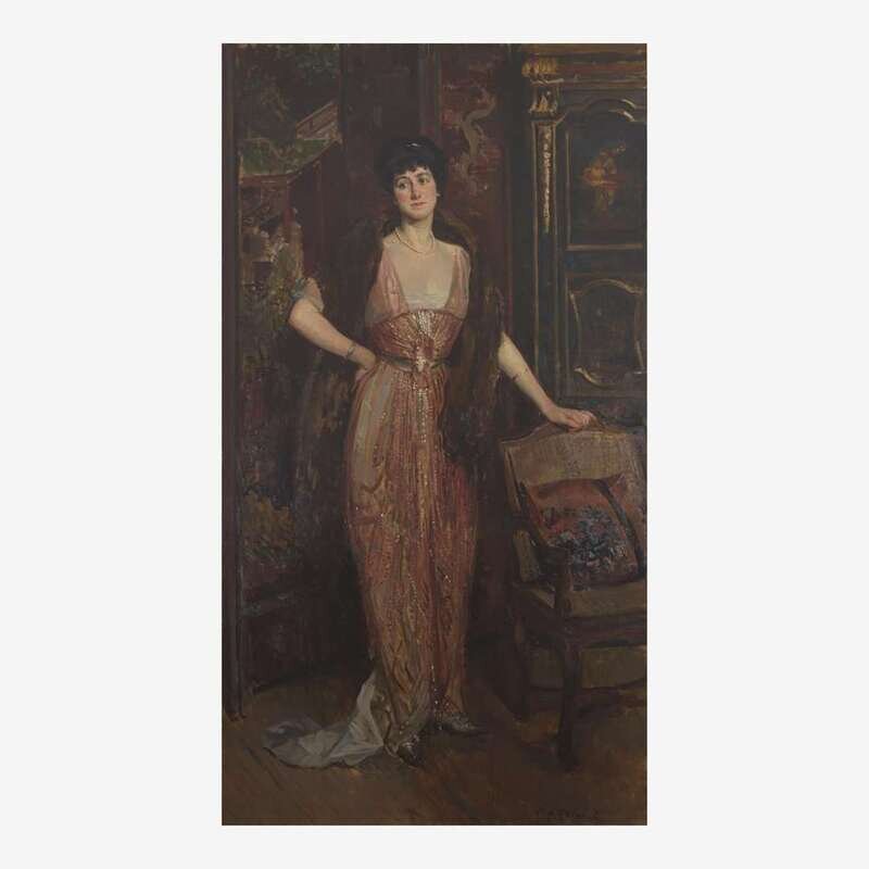 Jacques-Émile Blanche (French, 1861–1942) Portrait of a Lady With a Fur in a Chinese Cabinet, Full Length