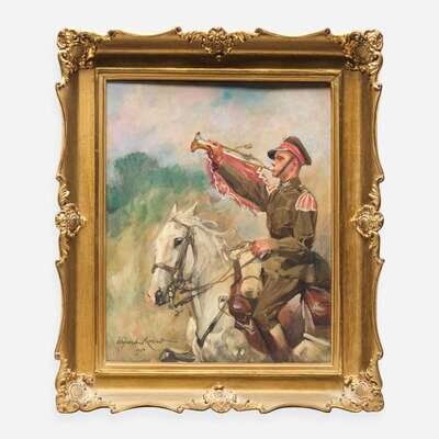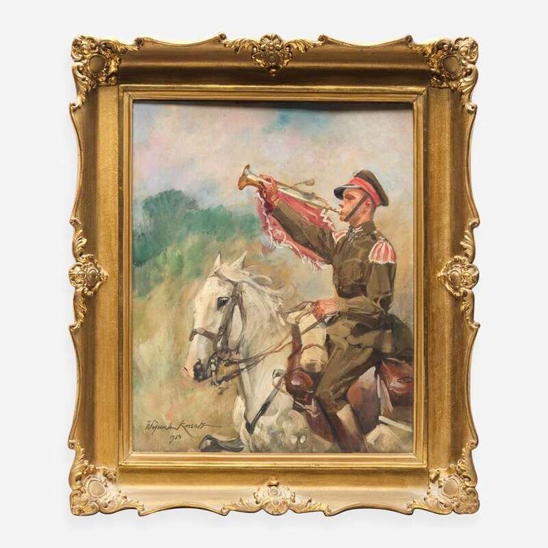 Woiciech (Aldabert) Ritter von Kossak (Polish, 1856-1942) Trumpetting Soldier on Horseback