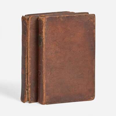 Philadelphia: Printed for H. & P. Rice; and J. Rice & Co., Baltimore, 1794. In two volumes. First American edition. 12mo. (iv), 266; 282 pp. Contemporary full brown calf, red and black morocco spine labels, stamped in gilt, front board of second volume detached, same volume's spine labels perished; boards, extremities, and joints of each volume rubbed; corners worn in each volume; headcaps of each volume worn and chipped; all edges trimmed; text leaves lightly toned, light to moderate foxing to same; front free endpaper and first 12 leaves of second volume loose; portion of upper margin of pp. 259-260 in second volume excised, not affecting text. From the library of Dr. George Smith, and with his book-plate on front paste-down of each volume; additionally with the signature of his father, Benjamin Hayes Smith (1765-1806) at head of each title-page. Evans 20571; ESTC W6752