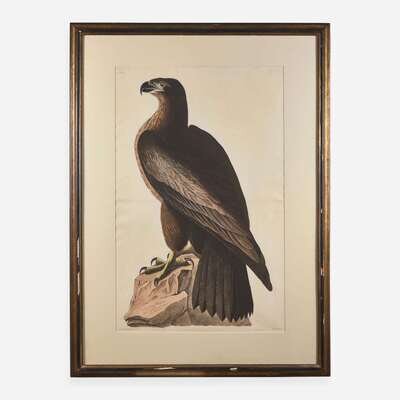 (London): R(obert). Havell, (1827). Hand-colored engraving with aquatint and etching, on J. Whatman Turkey Mill watermarked paper, dated 1827. Engraved by Robert Havell, Jr., and printed and colored by Robert Havell, Sr. Light mat burn; crease along center from when folded, with remnants of tape on verso from when reinforced; short repaired closed tear in top left; short closed tear in top right. 39 x 25 13/16 in. (991 x 656 mm). In mat and in frame, 51 1/2 x 37 7/8 in. (1308 x 962 mm). Low, p. 35, Variant 1