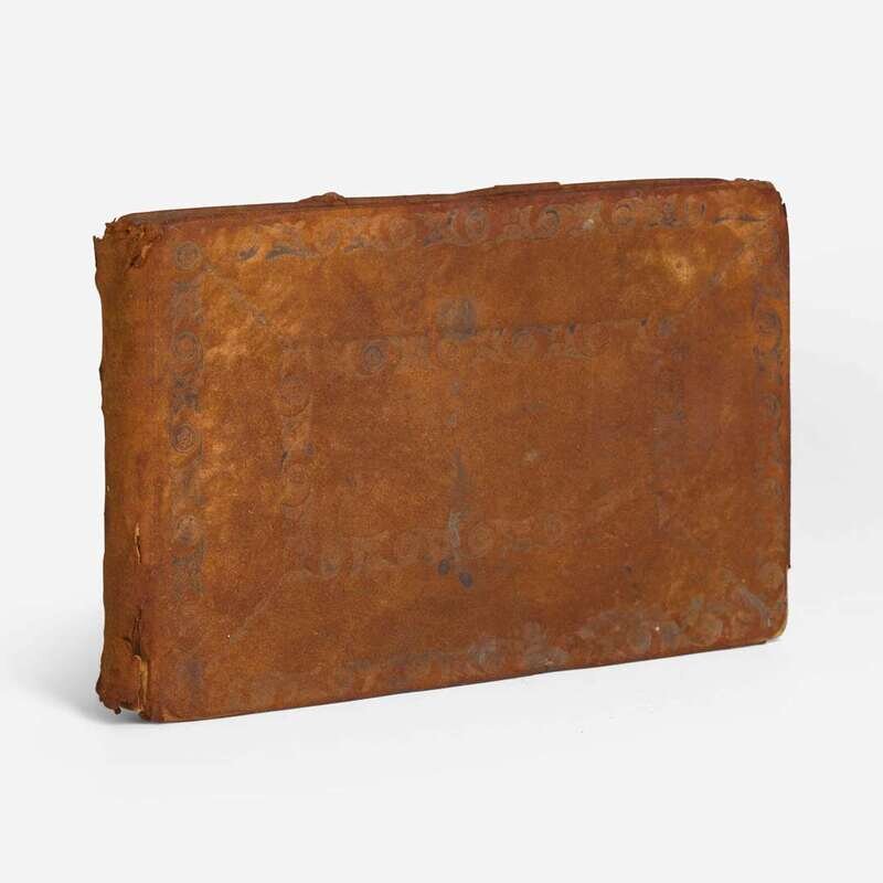 Sussex County, New Jersey, October 29, 1819-August 21, 1821. Oblong 8vo. Autograph journal of Sussex County Sheriff William Darrah, comprising 75 manuscript entries, each largely two pages in length, primarily relating to civil cases, listing the plaintiff(s), defendant(s), judge, damages awarded, court and administrative fees, etc; most entries signed at bottom by Darrah. Original full reverse tan calf, stamped in blind, boards and spine worn and rubbed; all edges trimmed; scattered, generally light, wear; scattered ink smudging.