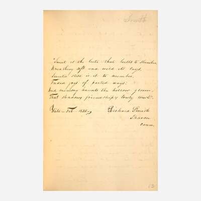 Huntington was born in Norwich, Connecticut on September 3, 1802. He married Mary Ann Strong on June 10, 1830, and had four children, including Henry Strong Huntington (who inscribed this volume) on July 15, 1836. Following his graduation from Yale, Oliver moved to New Haven where he attended medical lectures, and then to New York City, where he pursued mercantile business. In 1837 he moved his family to Cleveland, Ohio and operated a pharmacy until his retirement, in 1857. Following the death of his wife Mary in 1840 he married Eunice Kimberly Hitchcock in 1854. He died in Cleveland in 1877. Henry, his only surviving child, graduated from Yale in 1857, and became a Presbyterian minister, serving in New York and in California.