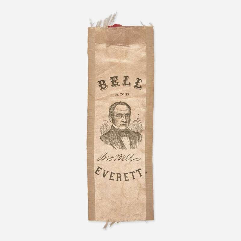 Rare 1860 campaign ribbon for Constitutional Union Party presidential candidate John Bell and his running mate, Edward Everett.