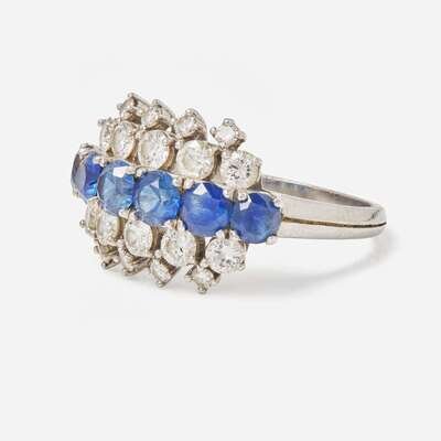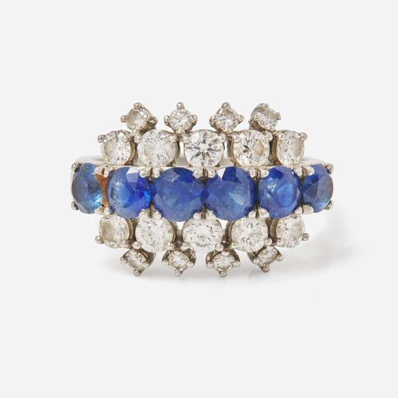 A J.E. Caldwell Platinum, Sapphire, and Diamond Ring