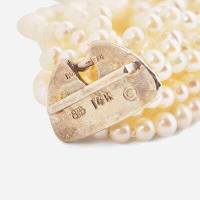 A 14K Gold Boris LeBeau Pearl Torsade with Diamonds Boris LeBeau