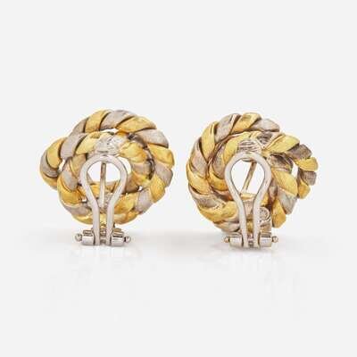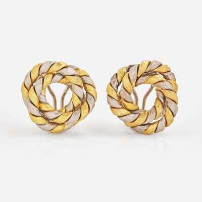 A Pair of Two-Tone 18K Gold Earrings