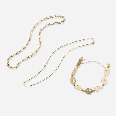 Snake Chain Length: 16 3/8in; Paperclip Chain Length: 16 1/2in; Bracelet Length: 7in; Weight: 26.2 Gross dwt.