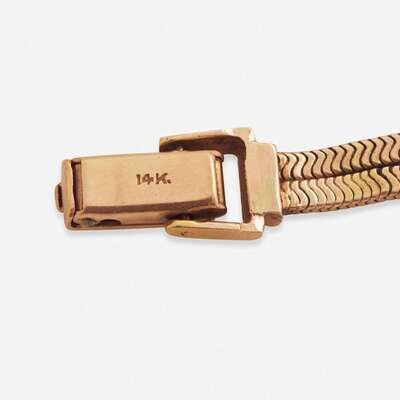Rose Gold Case Size: 14.29mm x 17.50mm; Rose Gold Bracelet Length: 6 1/2in; Yellow Gold Case Size: 22.90mm x 10.19mm; Yellow Gold Bracelet Length: 5 1/2in; Weight: 25.6 Gross dwt.