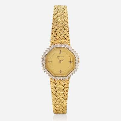 A Ladies 14K Yellow Gold and Diamond Watch