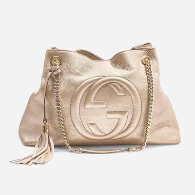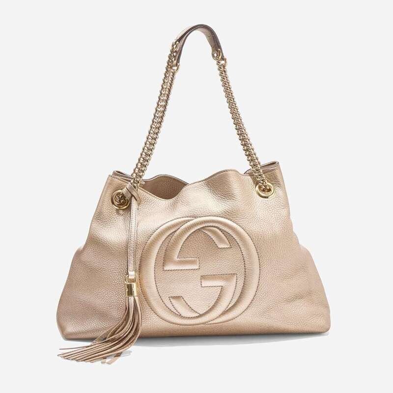 A Gold Gucci Pebbled Calfskin Soho Chain Shoulder Bag Gucci