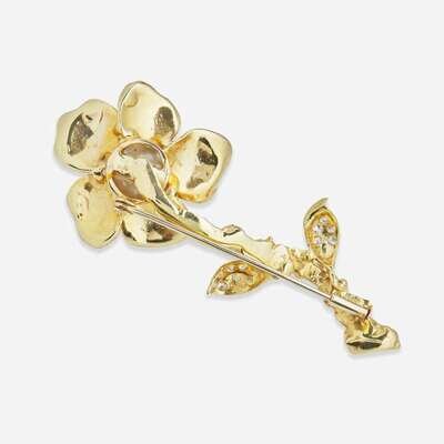 A 14K Yellow Gold and Gemstone Brooch