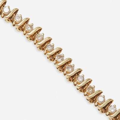 A 14K Yellow Gold and Diamond Bracelet