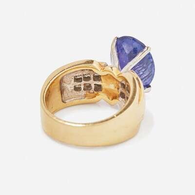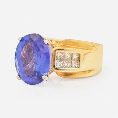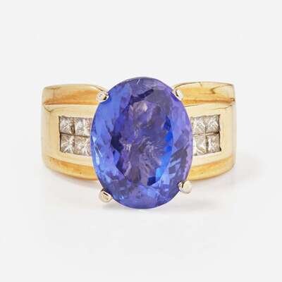 A 14K Yellow Gold, Tanzanite, and Diamond Ring