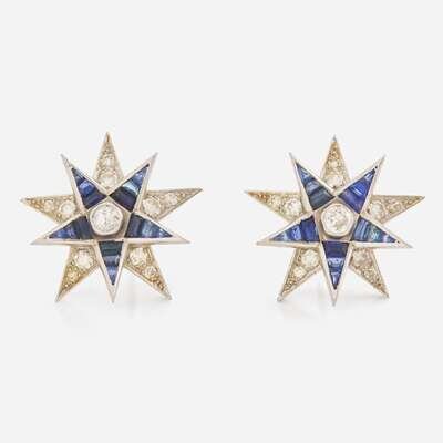 A Pair of Platinum, Sapphire, and Diamond Star Earrings