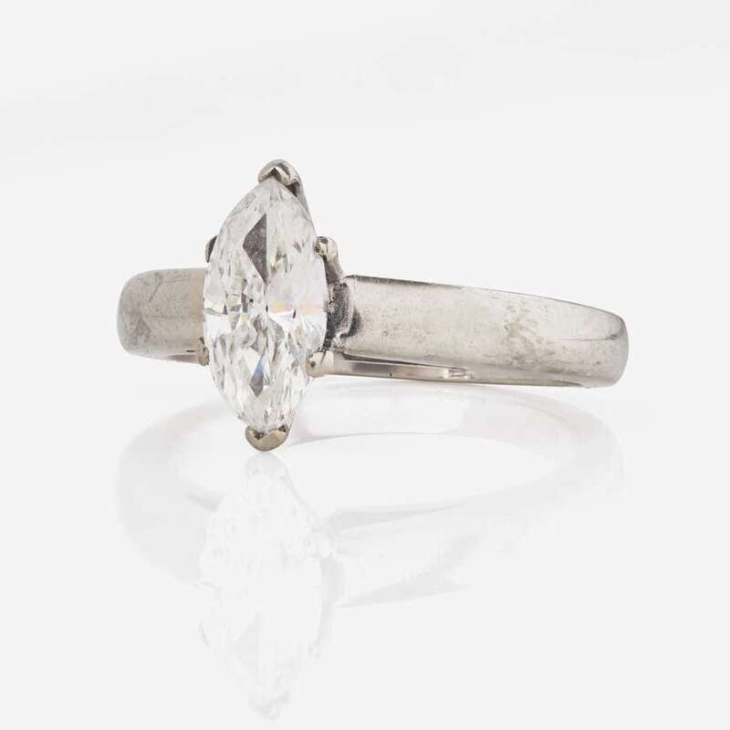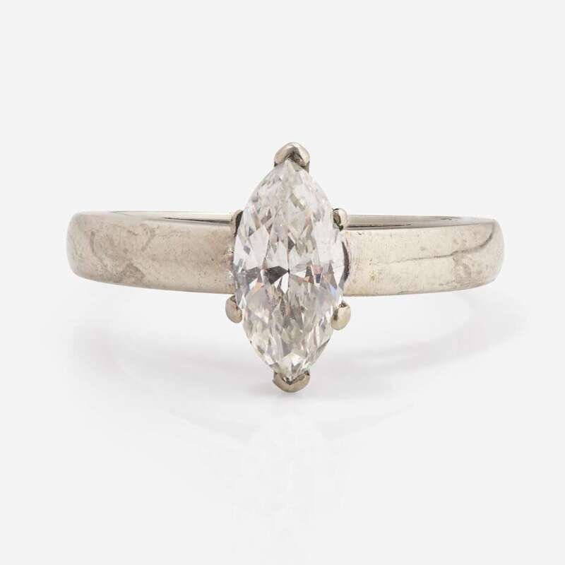 A 14K White Gold and Solitaire Diamond Ring 1.17 Carat Marquise-Cut Diamond Ring, GIA Certified