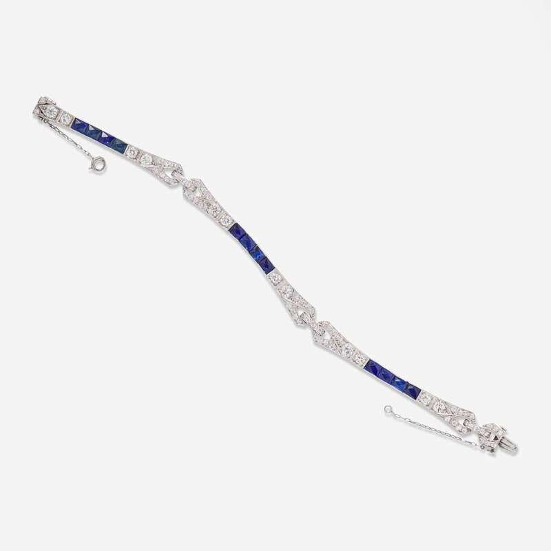 A Platinum, Diamond, and Sapphire Bracelet Art Deco, c.1920