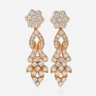 A Pair of 22K Yellow Gold and Diamond Earrings