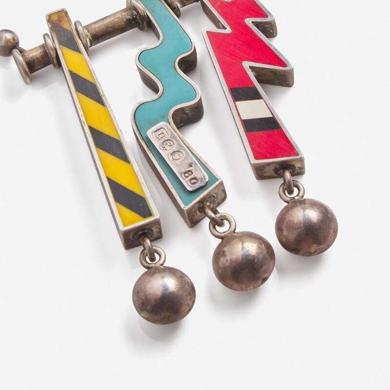 Impressed maker's mark in the form of pseudo hallmarks on silver tag mounted on reverse of pendant, consisting of a "Q", a bird and a hand; dated [19]"80"