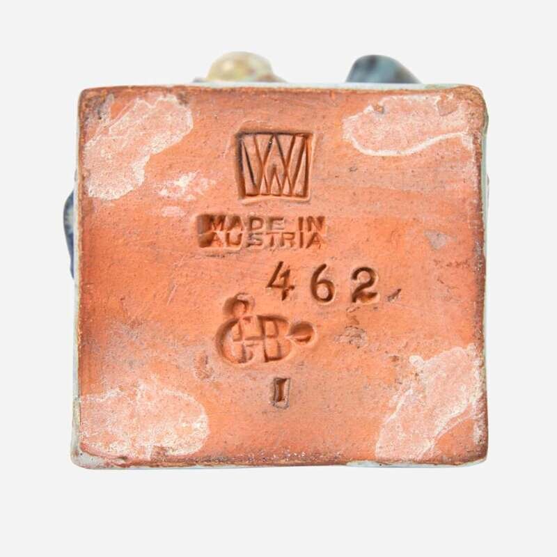 The two figural groups marked with the Wiener Werkstätte "WW" logo, "Made in Austria", and "GB", for designer Gudrun Baudisch-Wittke (Austrian, 1907-1982)