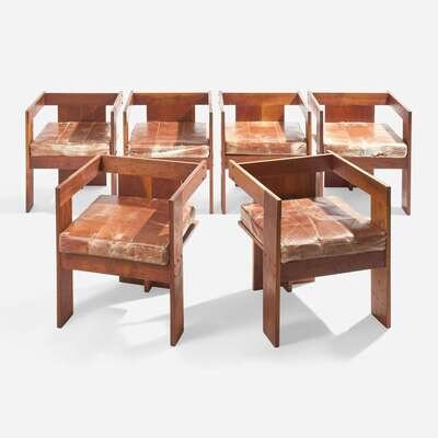 American Modern Set of Six Studio Made Dining Armchairs, likely USA, circa 1940s