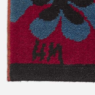 1951, with woven initials bottom left, numbered 61 on the label verso (from the edition of 500), Alexander Smith and Sons Carpet Company, New York, publisher. Hand-woven wool pile tapestry in colors.