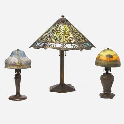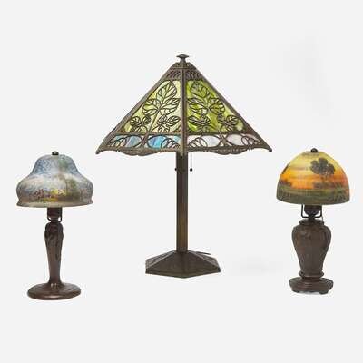 Handel Lamp Company (American, active 1888-1936) and Bradley & Hubbard (American, active 1852-1940) Three Table Lamps, USA, early 20th century