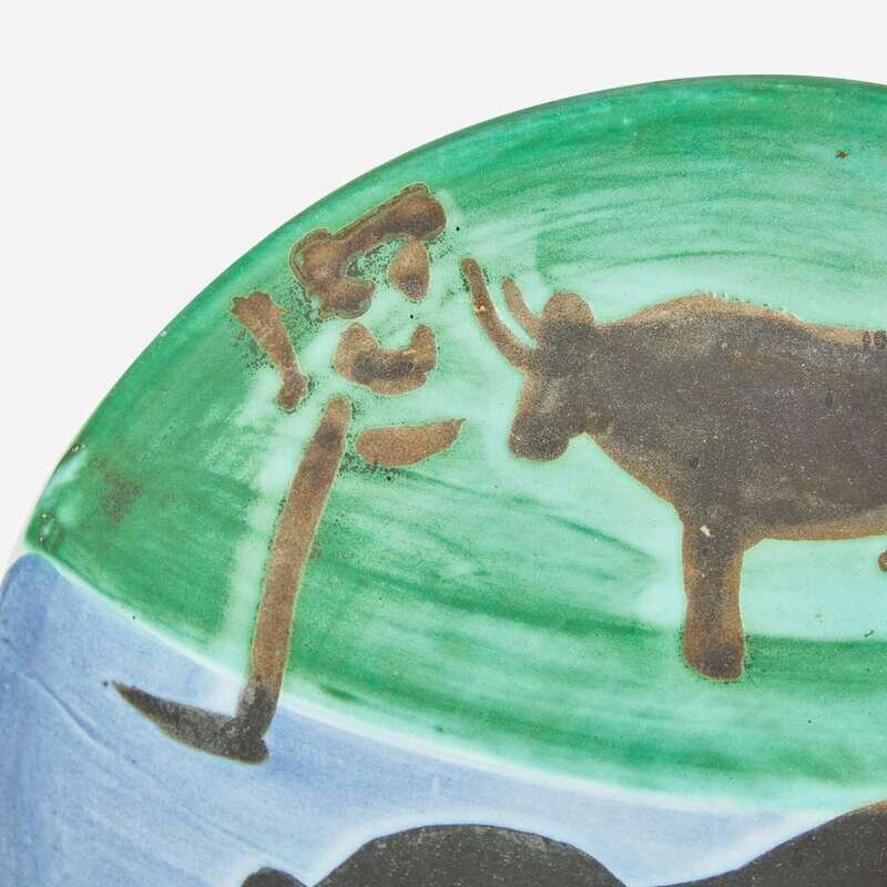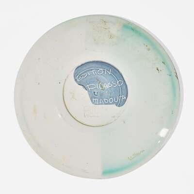 1952, from the edition of 500, inscribed 'EDITION PICASSO' and 'MADOURA’, and stamped 'MADOURA PLEIN FEU' and 'EDITION PICASSO' on the underside. White earthenware clay plate, with decoration in engobes and oxidized paraffin, and with white enamel.