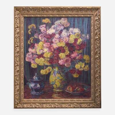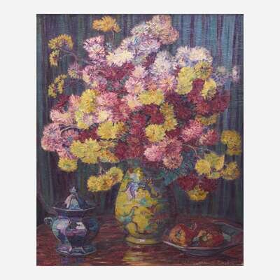 Maude Drein Bryant (American, 1880-1946) Still Life with Mums and Peppers