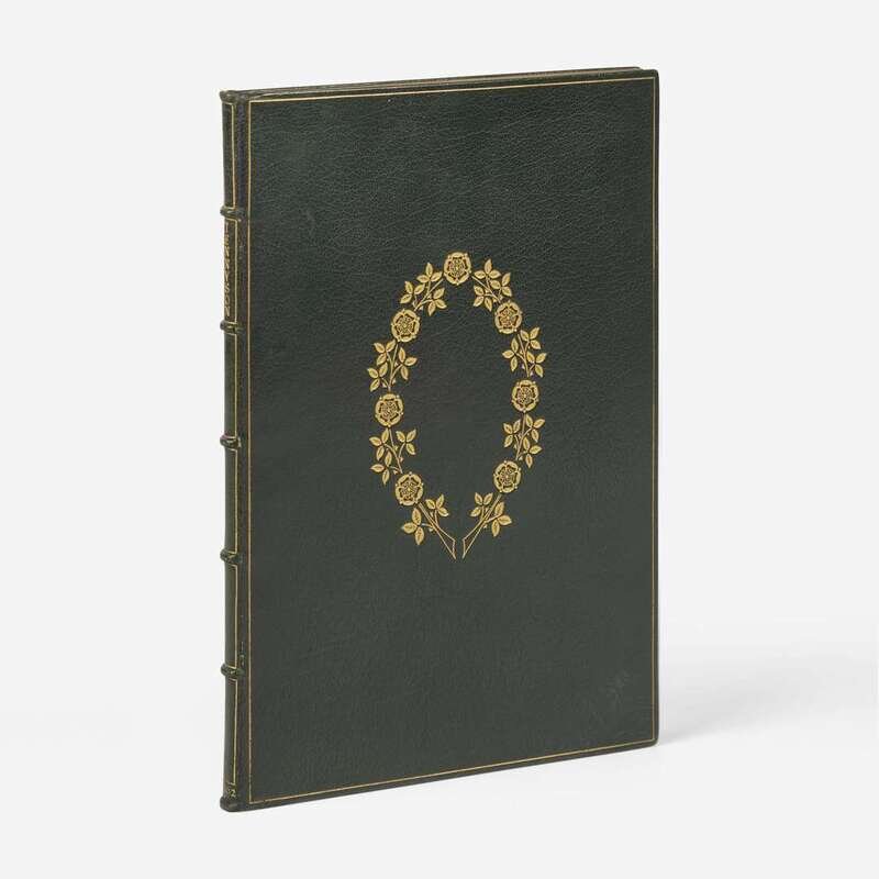 London: The Doves Press, 1902. First and limited edition, one of 325 copies printed on paper. 8vo. (iv), 55, (1) pp. Presentation copy, inscribed on front free endpaper by Doves Press founder T.J. Cobden-Sanderson, "To Sylvia Stanley in memory of past years and with my best wishes for the years to come." Text printed in red and in black. Bound by Cobden-Sanderson in full green crushed levant, decorated in gilt; all edges gilt; scattered light foxing to fore- and bottom edges of last eight leaves of text; signed by him “The Doves Bindery 19 C-S 04”. Book-plate of Robert Wayne Stilwell on front paste-down, and of Brian Douglas Stilwell on verso of first free leaf. Ransom, p. 250; Tomkinson, p. 54; Franklin, p. 210, Tidcombe DP4 A beautifully bound presentation copy of Tennyson's poems, with a great association. Inscribed and bound by Doves Press and Doves Bindery founder, T.J. Cobden-Sanderson, to his close friend and former Cambridge classmate, Sylvia Stanley (1882-1980). Stanley was the niece of John Russell, Viscount Amberley (1842-1876), and following his death in 1876, Cobden-Sanderson was named guardian of Russell’s two sons–one of whom was future English philosopher and wit Bertrand Russell (1872-1970). A superb copy.