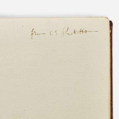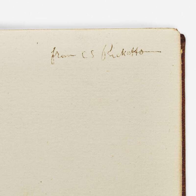 (London: The Vale Press, 1896). First and limited edition, one of 310 copies. 8vo. (117), (2) pp. Presentation copy, inscribed on second free leaf by founder of The Vale Press Charles Ricketts: "from CS Ricketts." Contemporary full brown levant, decorated in gilt; top edge gilt, other edges untrimmed; marbled endpapers, lightly soiled and with offsetting; ownership inscription of Eugenia Law Biddle on half-title. Book-plates of Brian Douglas Stilwell (designed by Reynolds Stone), and A(lexander). Van Rensselaer on front paste-down. Ransom, p 434, Tomkinson, p. 165, Franklin, p. 203 A finely bound copy of the fourth title published by The Vale Press, signed by its founder, legendary book designer and printer Charles Ricketts (1886-1931).