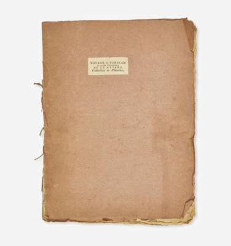 Paris: Chez F. Buisson, (1799). Second edition in French. Atlas volume only. Small folio. Illustrated with 44 engraved plates by Tardieu (including five folding plates). Original limp wrappers, original paper cover label, rear wrapper detached, spine perished, scattered wear and soiling to wrappers; all edges untrimmed; scattered soiling and spotting to plates; long closed tear along bottom edge pl. XVIII. Sabin 91083; Abbey, Travel 719, see note