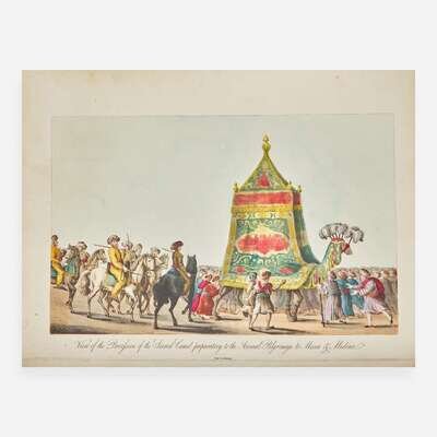 London: Printed for John Hearne; by J.F. Dove, 1822. First edition. Folio, 15 3/4 x 12 1/2 in. (400 x 317 mm). Text printed in English and in French. Illustrated with hand-colored aquatint frontispiece and 35 hand-colored aquatint plates, on J. Whatman-watermarked paper dated 1822. Bound to style in three-quarter brown speckled calf over marbled paper-covered boards, red morocco spine label, stamped in blind and in gilt; all edges trimmed; scattered offsetting from plates on to text; scattered light foxing to text; minor wear in fore-edge of some leaves at center; with the armorial book-plate of Chapman-Purchas on front paste-down. Abbey, Travel 198; Blackmer 1814 A handsome first edition of Willyams's views of the Mediterranean and the Middle East, the basis of which derive from Willyams's earlier work, A Voyage up the Mediterranean in His Majesty's Ship the Swiftsure (1802), and that were "re-aquatinted and re-etched...presumably owing to wear." (Abbey)