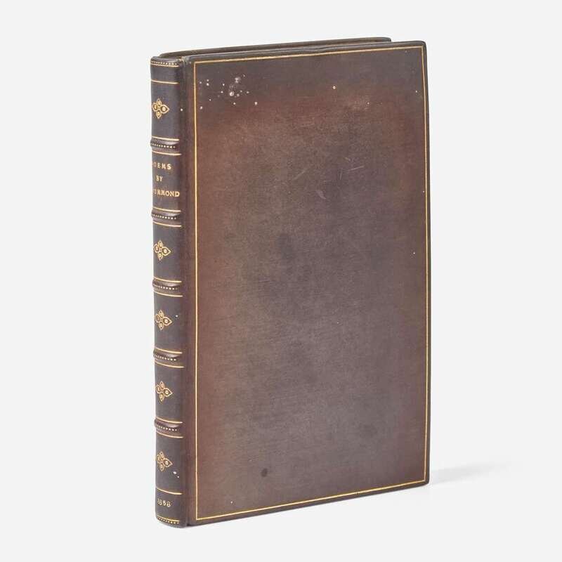 London: Printed by W(illiam).H(unt). and are to be sold in the Company of Stationers, 1656. First octavo edition. 8vo. (xiv), 208 pp.; with four sectional title-pages, but continuous pagination; without the rare dedication leaf to John Scot that "occurs in very few copies" (Grolier). Edited by Edward Phillips. Illustrated with an engraved portrait of Drummond by R(ichard). Gaywood. Full brown calf, stamped in gilt; all edges gilt; title-page repaired, with upper portion expertly restored in ink facsimile; lower fore-edge repaired, p. 19/20; small portion of fore-edge repaired, pp. 37-42; top edge trimmed close, shaving some headlines and page numbers; scattered spotting and soiling to text, especially to leaves at rear; scattered dampstaining in fore-edge; scattered marginalia; book-plate of bookseller and bibliographer Graham Pollard on front paste-down. Grolier, Wither to Prior, 300; ESTC R8599; Lowndes, p. 611 A scarce edition of the collected works of Scottish poet William Drummond (1585-1649). An edition with the imprint "printed for Richard Tomlins" was also published in 1656, from the same plates, but no priority has thus been established. Both are scarce to market, but this Hunt edition is traditionally considered the more rare of the two.