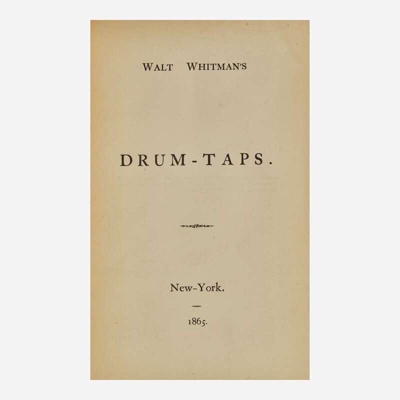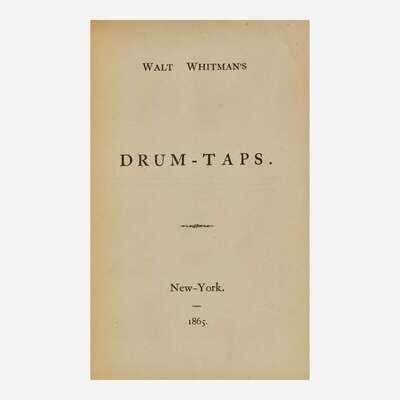 New-York, 1865. First edition, second issue (with Sequel to Drum-Taps, Washington, 1865-66). 12mo. 72, (2), 24 pp.; lacking front free endpaper. Publisher's full brown cloth-covered boards, stamped in blind and in gilt; edges speckled red; with the armorial book-plate of poet and scholar Percy L. Babington on front paste-down; front hinge lightly worn. Myerson A3.1.a2; BAL 21398; Wells and Goldsmith pp. 11-12 A handsome and very desirable copy of the second issue of Whitman's Drum-Taps, one of 1,000 copies printed, and featuring the first appearances of "When Lilacs Last in the Door-Yard Bloom'd" and "O Captain! My Captain!"