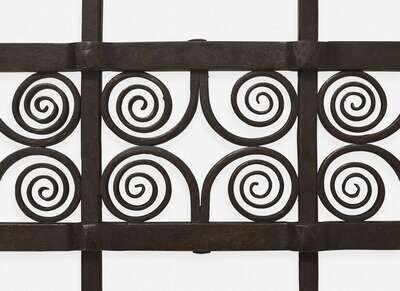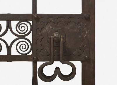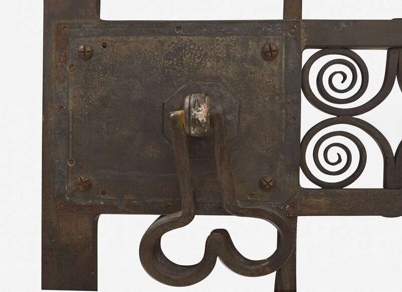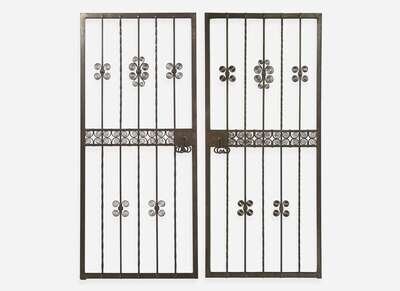 These doors, designed in 1927 for the J. Walter Thompson offices in the Graybar Building, New York, are represented in the Samuel Yellin Archive as Job No. 2660. The last image for the lot is an in-progress sketch of the present lot before the design was fully finalized, and has been reproduced here with permission from the Samuel Yellin Collection, Architectural Archives, Stuart Weitzman School of Design, University of Pennsylvania. This sketch is not included in the sale.