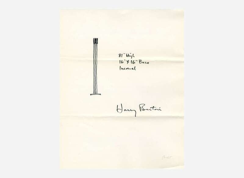 This lot is sold with an original signed drawing by Harry Bertoia of the present lot; a hardcover copy of Harry Bertoia, Sculptor (June Kompass Nelson, Wayne State University Press, Detroit, 1970) signed by Harry Bertoia; and a digital copy of a letter from the Harry Bertoia Foundation confirming its inclusion in the Harry Bertoia Catalogue Raisonné under number SO.TO.375.