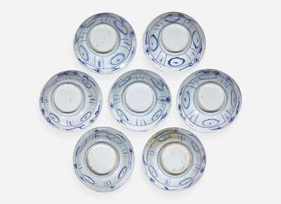 Thirteen similar Chinese blue and white "Kraak" bowls, late 16th-17th century 青花克拉克瓷十三件 十六世紀晚或十七世紀