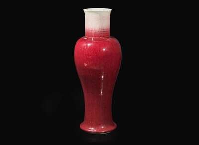 A large Chinese "Langyao" copper red-glazed baluster vase, Kangxi period 郎窯紅觀音瓶 清 康熙