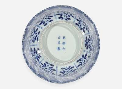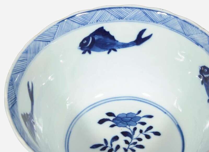 A Chinese blue and white porcelain "Fishes" bowl, Kangxi period 青花游魚盌 清 康熙