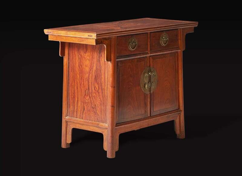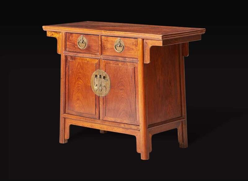 A Chinese huanghuali and hardwood side cabinet 黃花梨及硬木立櫃