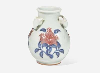 A small Chinese underglaze blue and red vase, 18th/ early 19th century 青花釉裡紅花樽 十八或十九世紀初