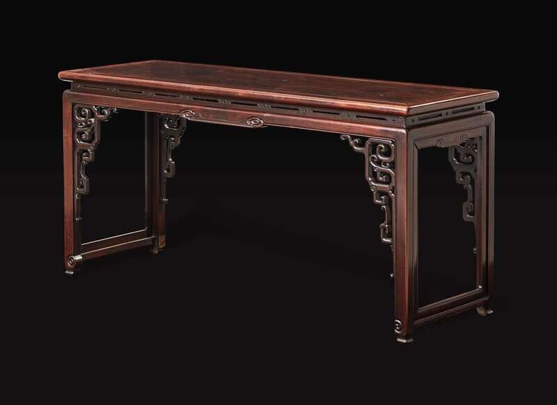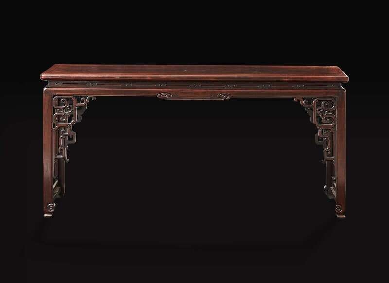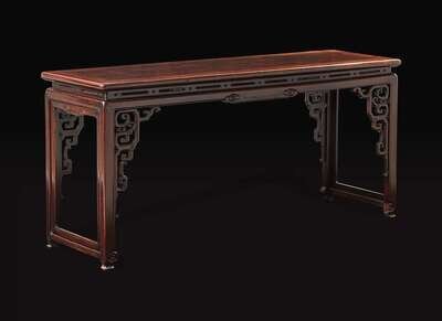 An unusual Chinese carved hongmu qin table, late Qing dynasty 紅木琴桌 晚清