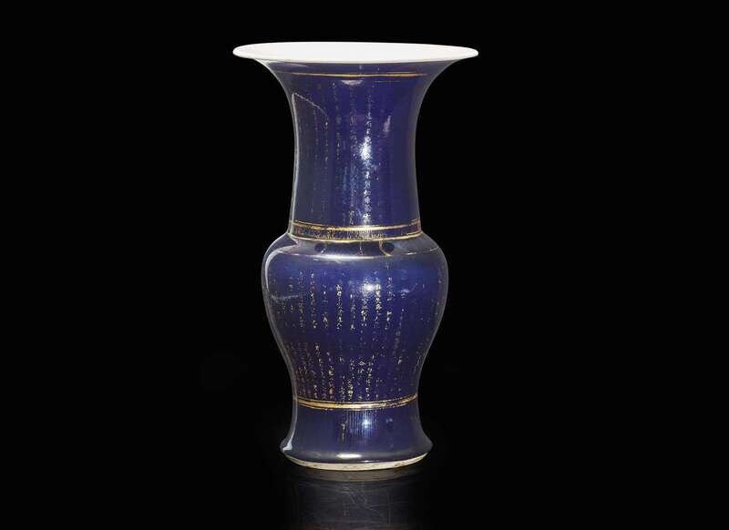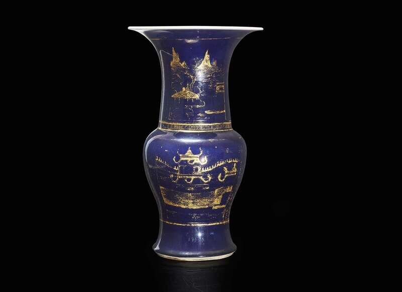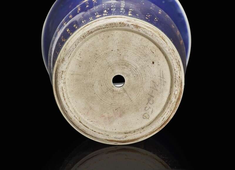 A Chinese gilt-decorated blue-ground phoenix-tail vase, Qing dynasty 鎏金鳳尾尊 清