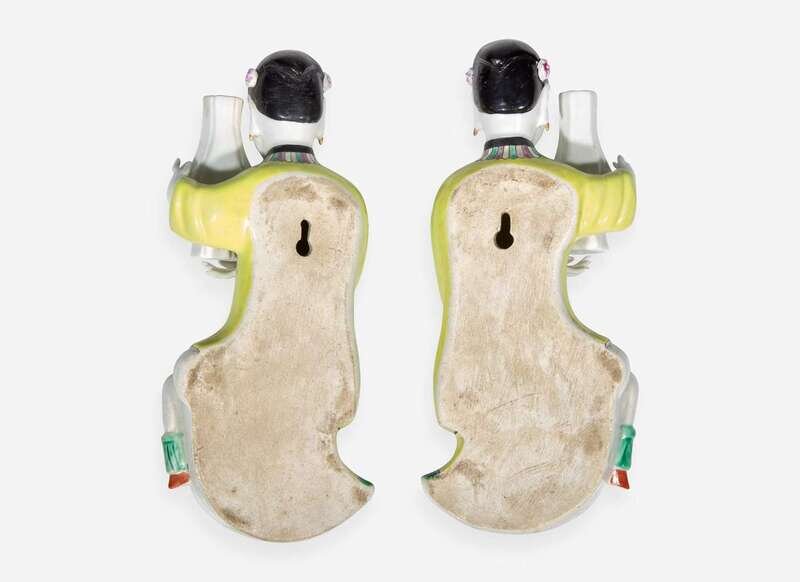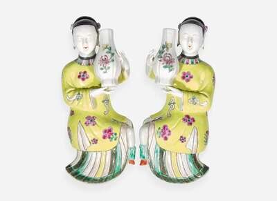 A Pair of Chinese famille rose-decorated porcelain "Meiren" wall vases 粉彩美人壁瓶